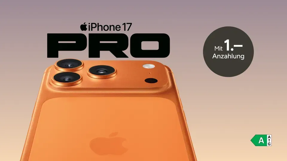 Hol dir jetzt das iPhone 17 Pro mit Flex Upgrade und einer Anzahlung von CHF 1.–. Das leistungsstärkste iPhone aller Zeiten. Mit brillantem 6,3" Display, Aluminium Unibody Design, A19 Pro Chip, 48 MP Rückkamera und bahnbrechender Batterielaufzeit.